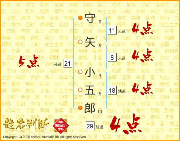 守矢小五郎さんの総運は29画の4点!