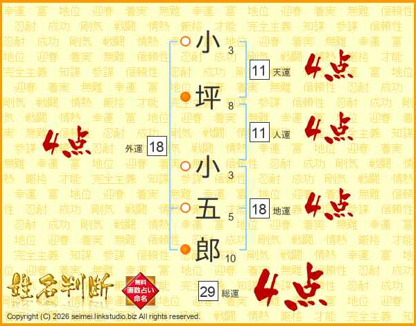 小坪小五郎さんの総運は29画の4点!