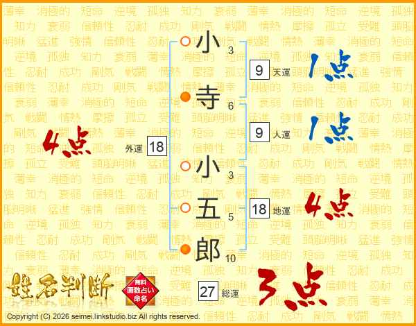 小(3画)寺(6画) 小(3画)五(5画)郎(10画)