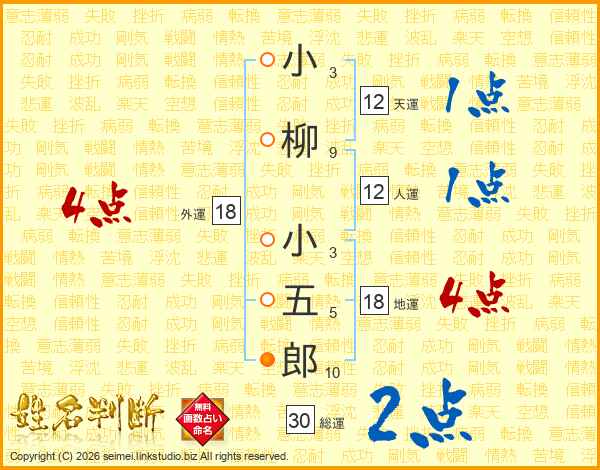 小柳小五郎さんの総運は30画の2点!