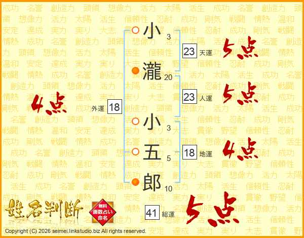小瀧小五郎さんの総運は41画の5点!