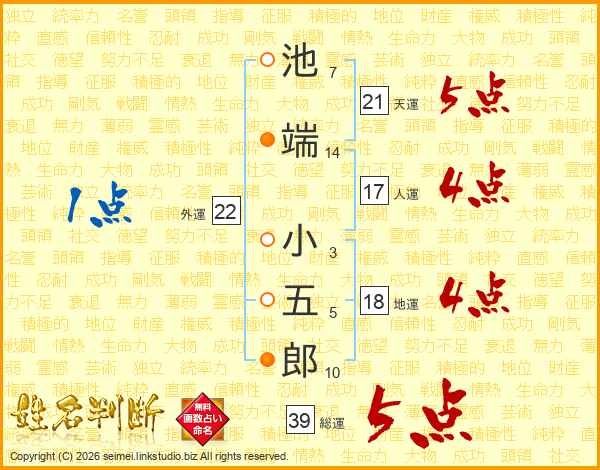池端小五郎さんの総運は39画の5点!