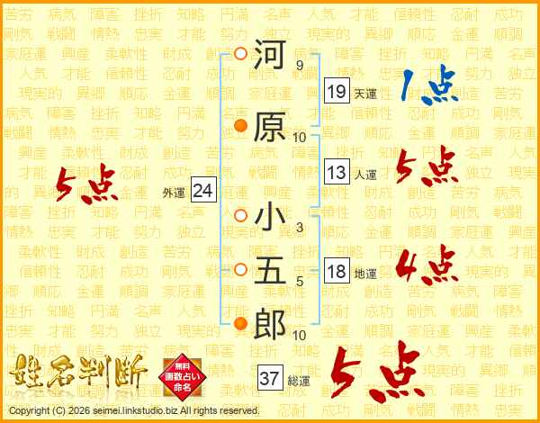河原小五郎さんの総運は37画の5点!