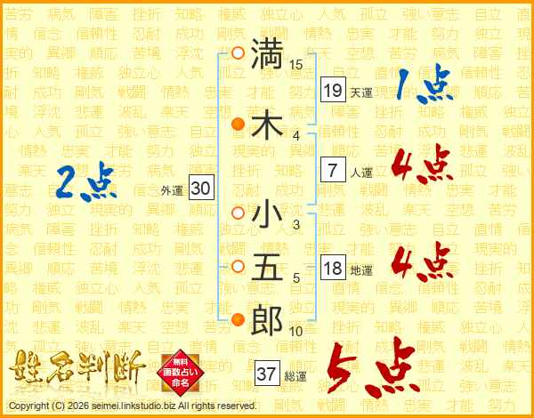 満木小五郎さんの総運は37画の5点!