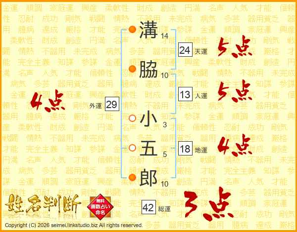 溝(14画)脇(10画) 小(3画)五(5画)郎(10画)