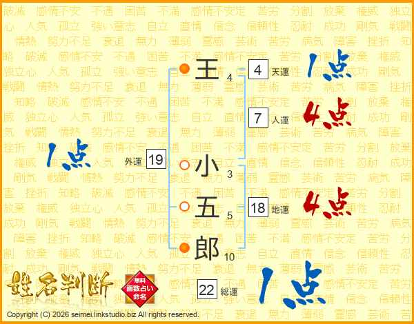 王小五郎さんの総運は22画の1点!