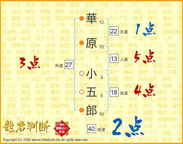 華原小五郎さんの総運は40画の2点!