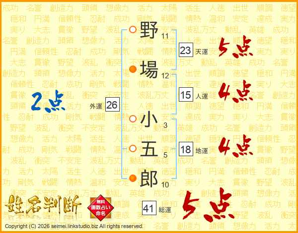 野場小五郎さんの総運は41画の5点!
