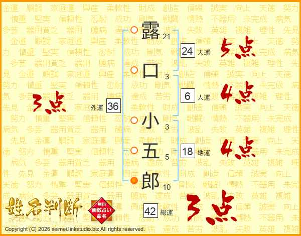 露口小五郎さんの総運は42画の3点!