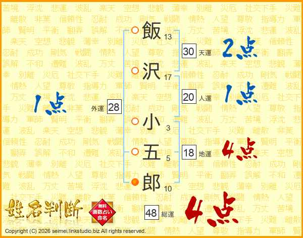飯沢小五郎さんの総運は48画の4点!