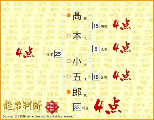 髙本小五郎さんの総運は33画の4点!