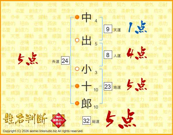 中出小十郎さんの総運は32画の5点!