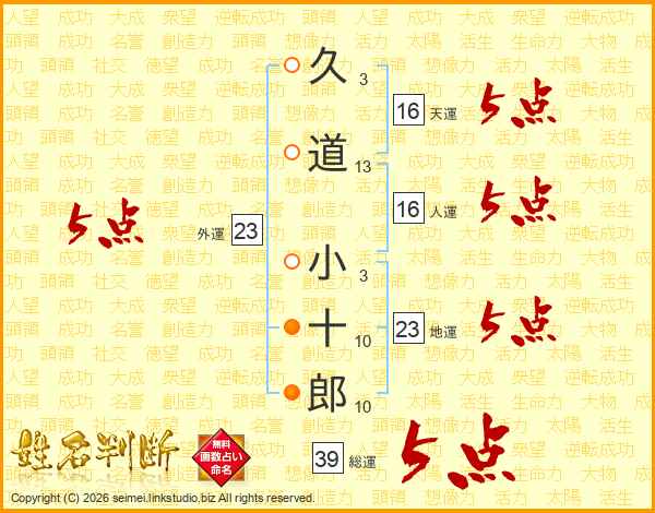 久(3画)道(13画) 小(3画)十(10画)郎(10画)