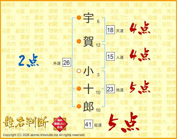 宇賀小十郎さんの総運は41画の5点!