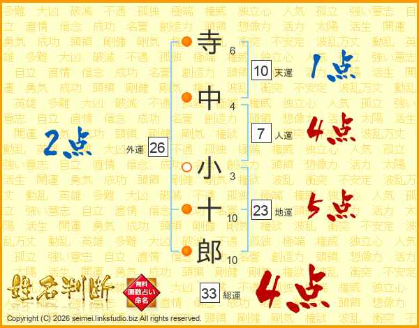 寺中小十郎さんの総運は33画の4点!