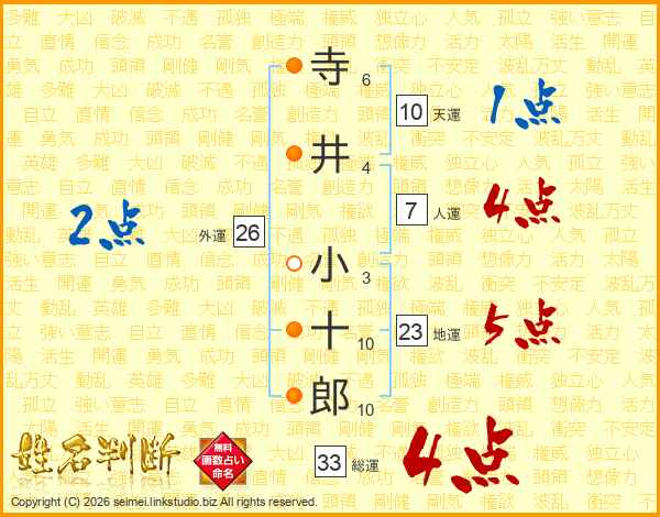 寺井小十郎さんの総運は33画の4点!
