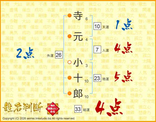 寺元小十郎さんの総運は33画の4点!