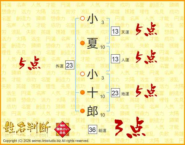 小夏小十郎さんの外運は23画の5点!