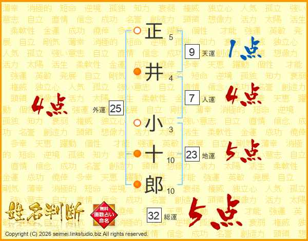 正井小十郎さんの総運は32画の5点!