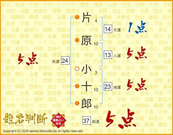 片(4画)原(10画) 小(3画)十(10画)郎(10画)