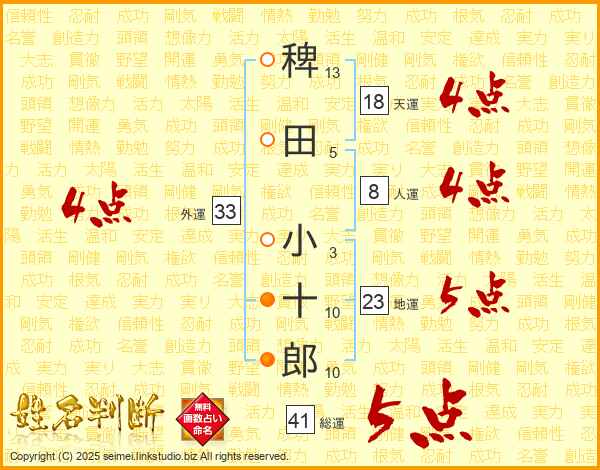 稗(13画)田(5画) 小(3画)十(10画)郎(10画)