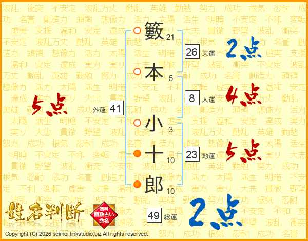 籔(21画)本(5画) 小(3画)十(10画)郎(10画)
