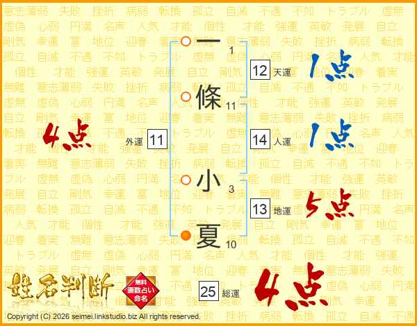 一條小夏さんの総運は25画の4点!
