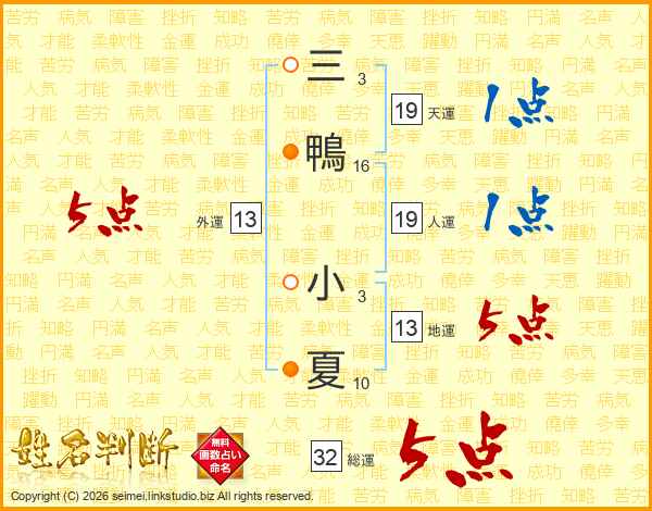 三鴨小夏さんの外運は13画の5点!