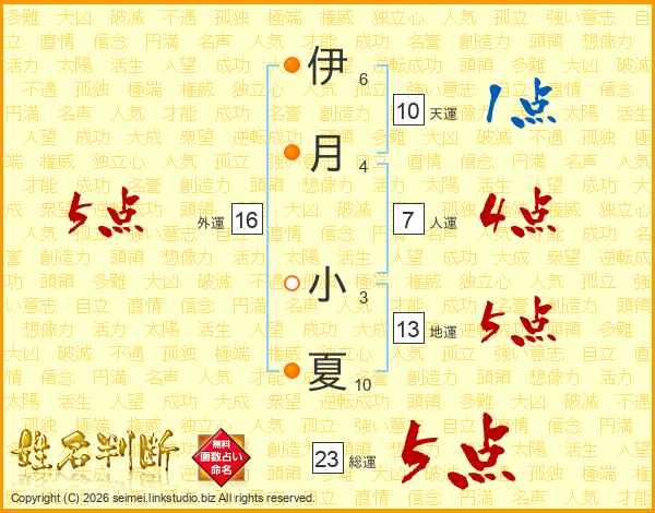 伊月小夏さんの総運は23画の5点!