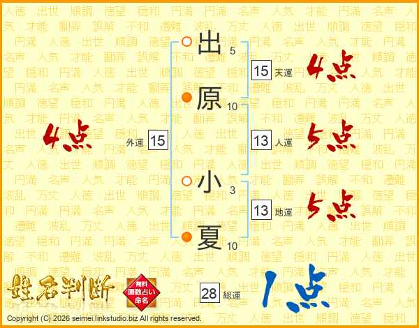 出原小夏さんの外運は15画の4点!