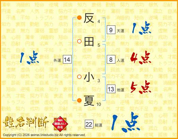 反田小夏さんの総運は22画の1点!