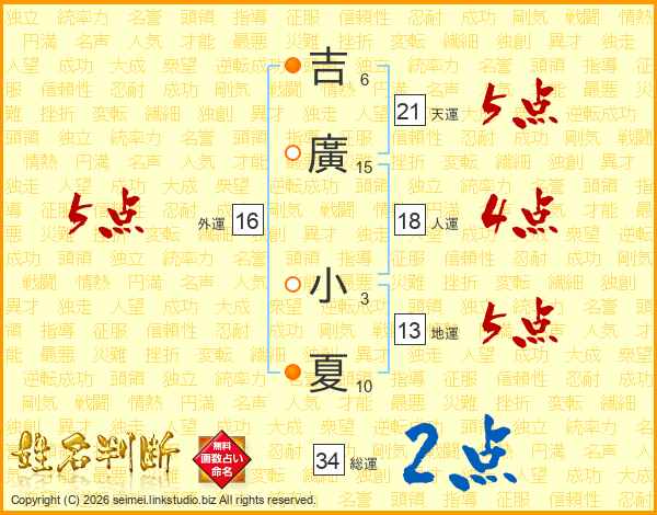 吉(6画)廣(15画) 小(3画)夏(10画)