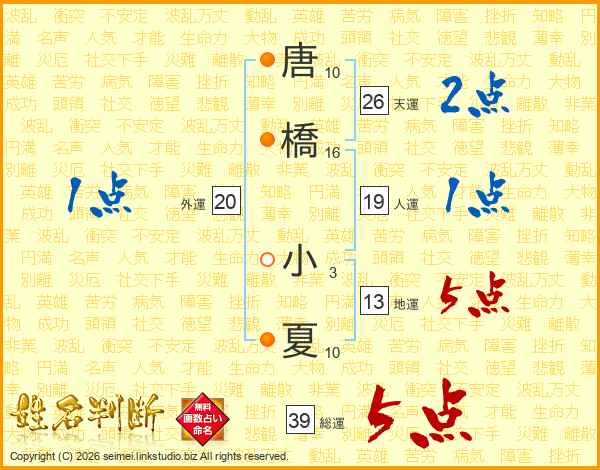 唐橋小夏さんの総運は39画の5点!