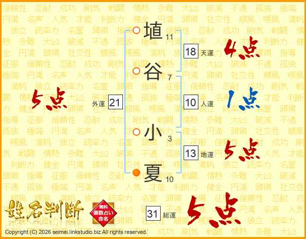 埴(11画)谷(7画) 小(3画)夏(10画)