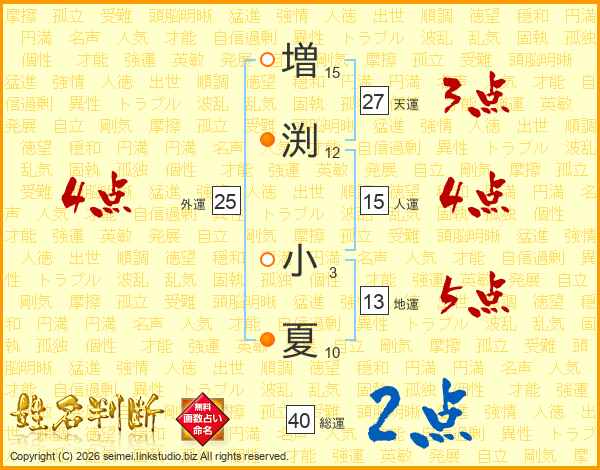 増(15画)渕(12画) 小(3画)夏(10画)