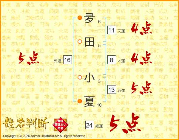 夛田小夏さんの総運は24画の5点!