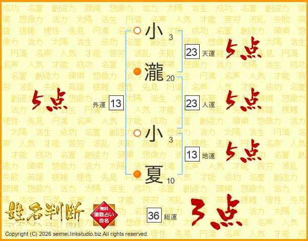 小瀧小夏さんの天運は23画の5点!