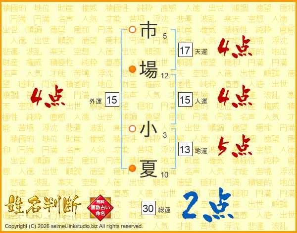 市場小夏さんの総運は30画の2点!