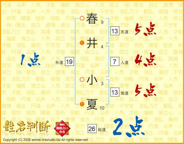 春井小夏さんの天運は13画の5点!