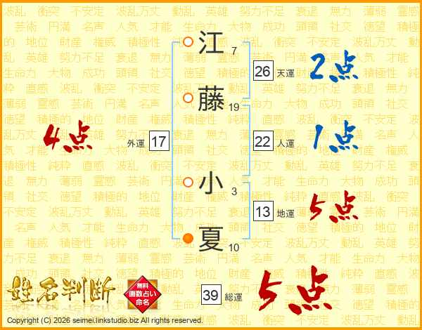 江藤小夏さんの総運は39画の5点!