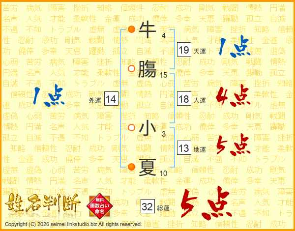 牛(4画)膓(15画) 小(3画)夏(10画)