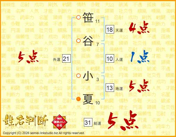 笹谷小夏さんの外運は21画の5点!