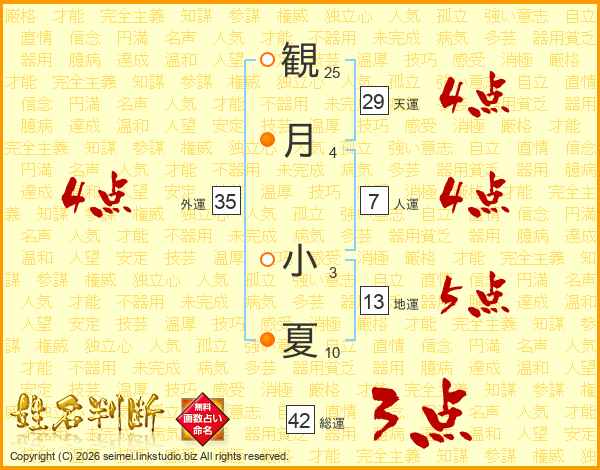 観月小夏さんの外運は35画の4点!