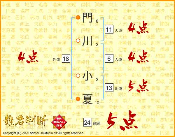 門川小夏さんの天運は11画の4点!