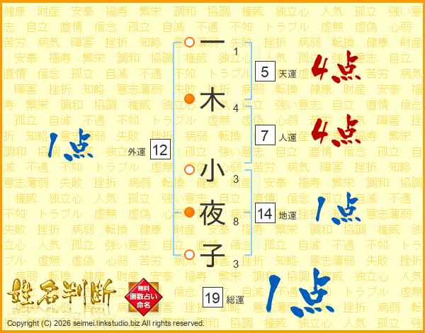 一(1画)木(4画) 小(3画)夜(8画)子(3画)