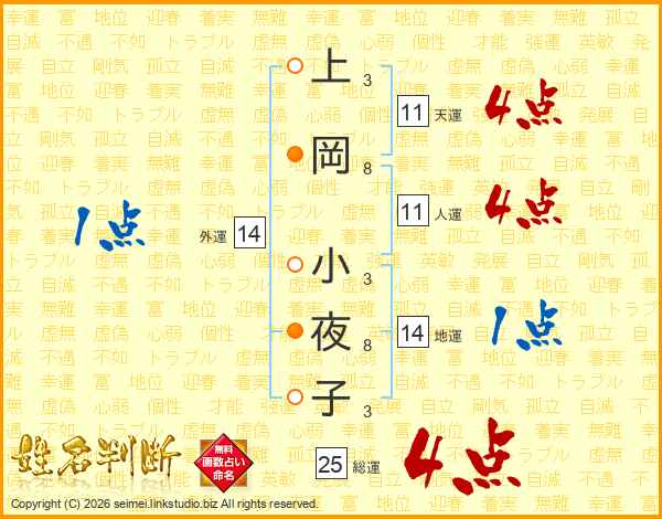 上岡小夜子さんの人運は11画の4点!