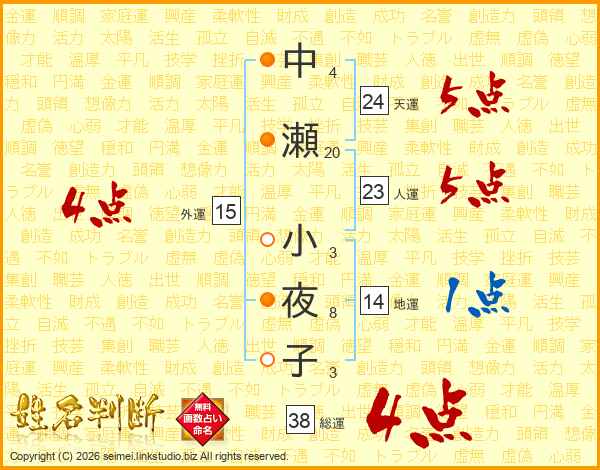 中瀬小夜子さんの総運は38画の4点!