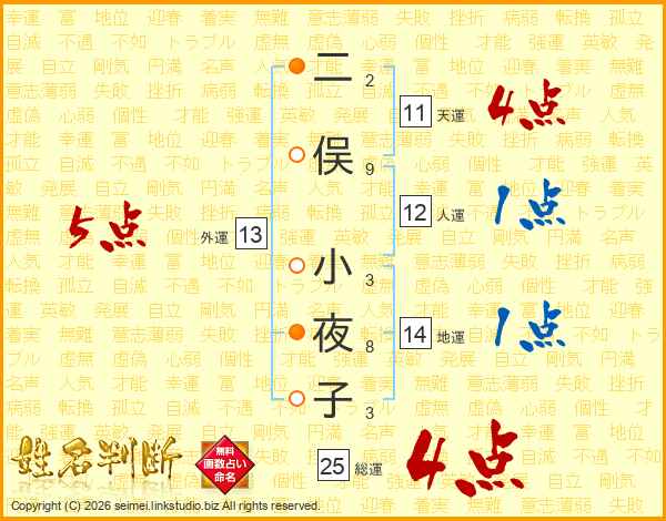 二俣小夜子さんの天運は11画の4点!