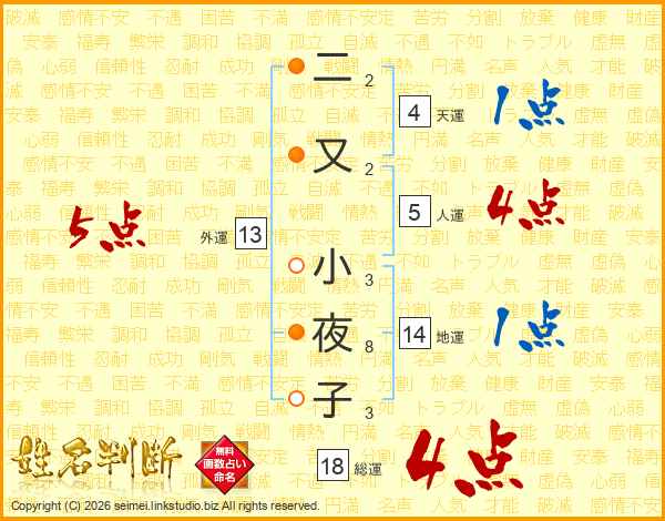 二又小夜子さんの外運は13画の5点!