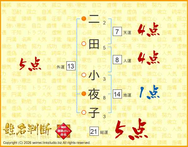 二田小夜子さんの総運は21画の5点!